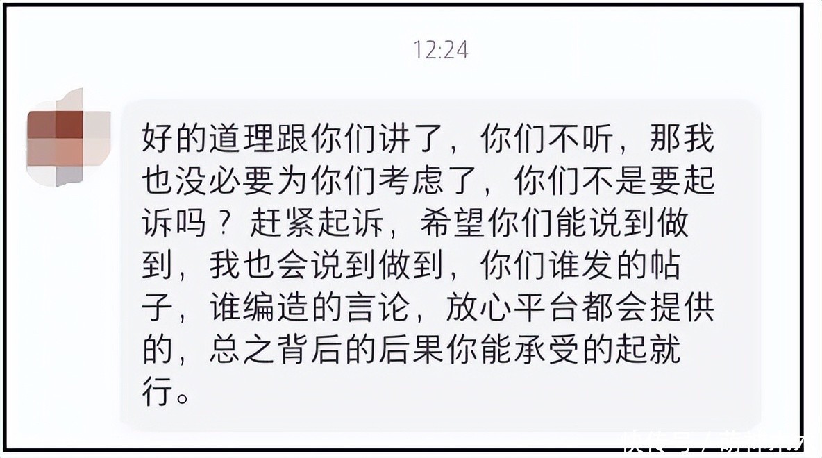 值得一提的是,群演发出吐槽帖后,立刻收到了剧组工作人员的警告,先是在群里威胁,又私信爆料者,用起诉、“惹官司”来威胁他们,态度高高在上,有恃无恐,令人气愤。